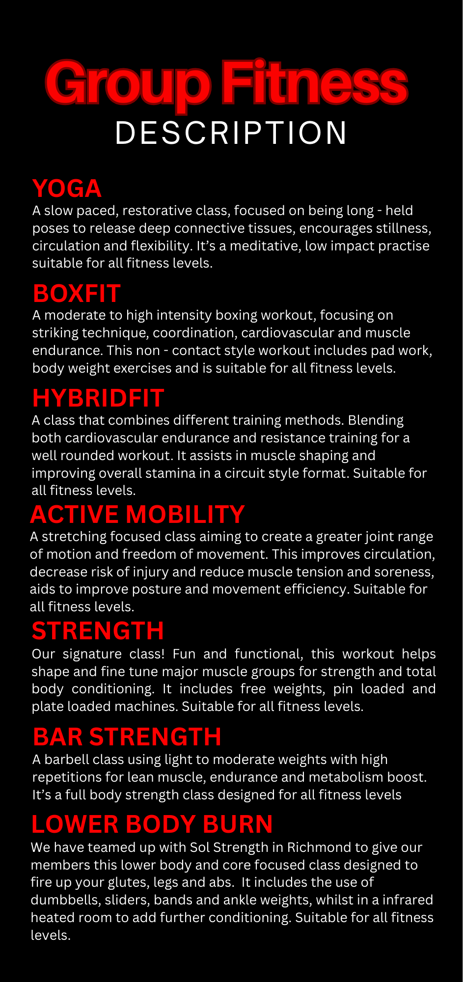Our Class Schedule